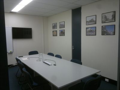 The meeting room is right off the Foyer so it is convenient for bringing visitors in for a meeting.